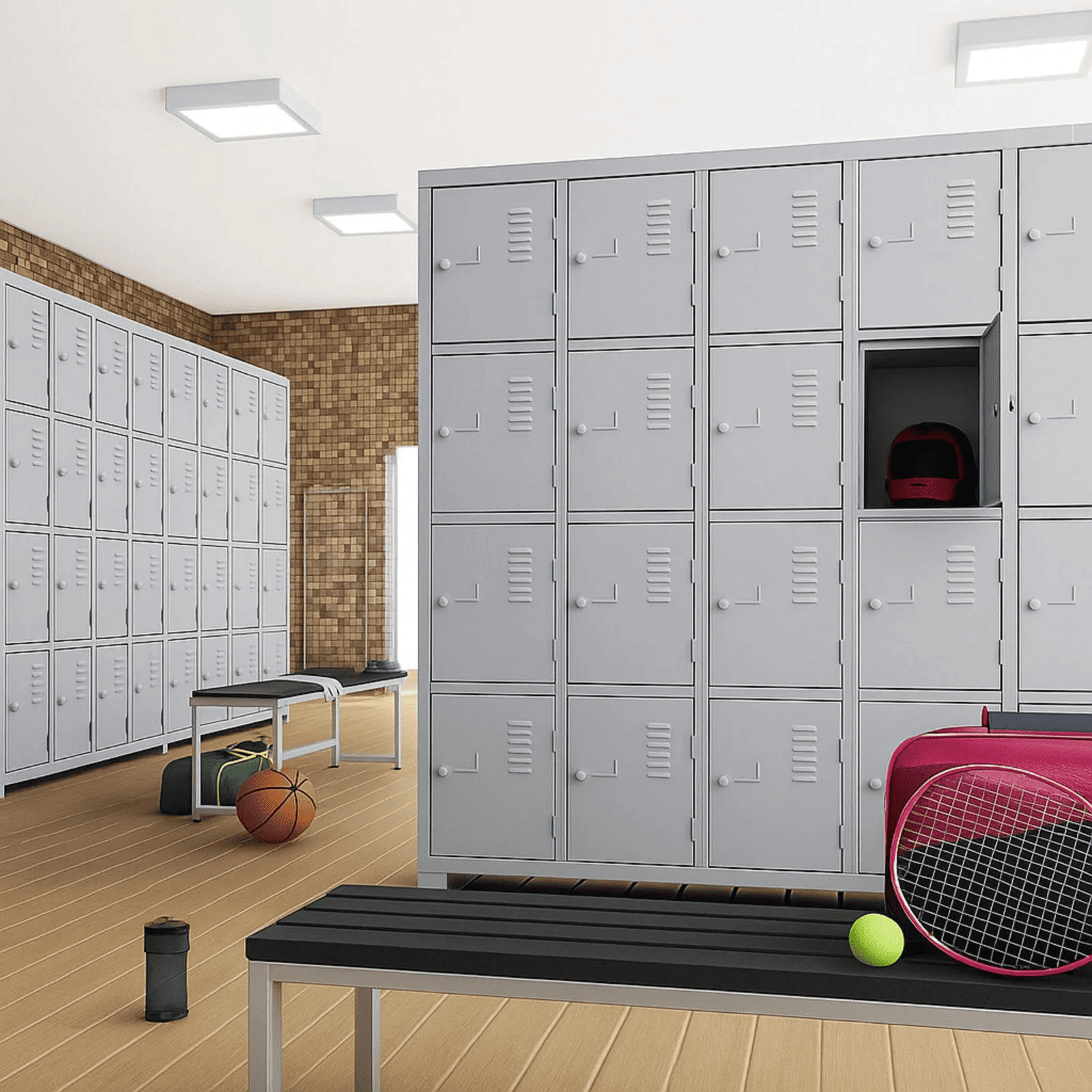 Conhecido também como guarda roupa de aço é ideal para ambientes como vestiários, academias, supermercados, bancos, almoxarifados, escolas e hospitais, seja para o uso de colaborardes ou clientes. Possui pés com sapatas plásticas protetoras, opção de porta lisa ou perfura, pitão para cadeado ou fechadura conjugada.
