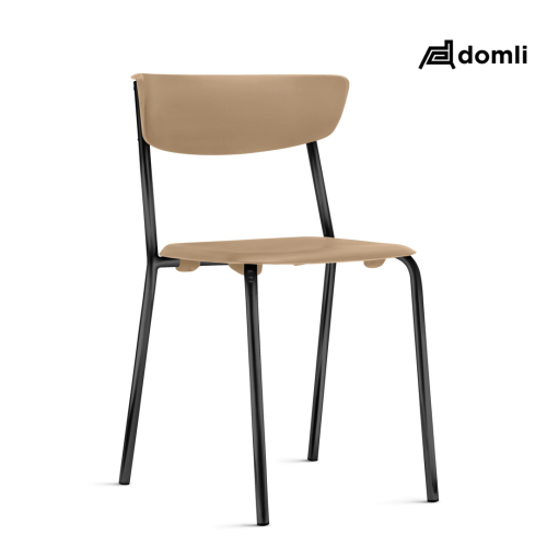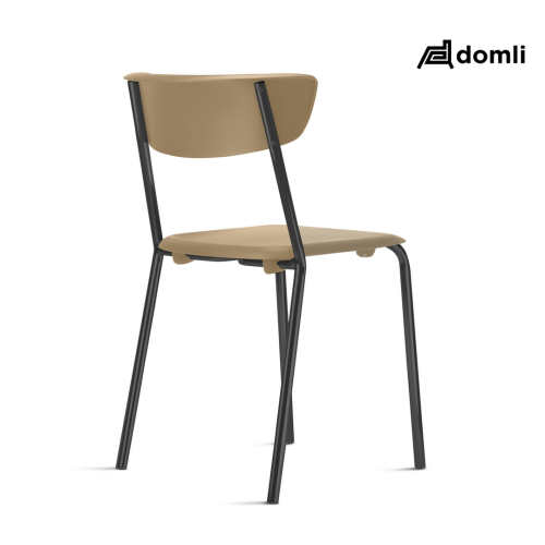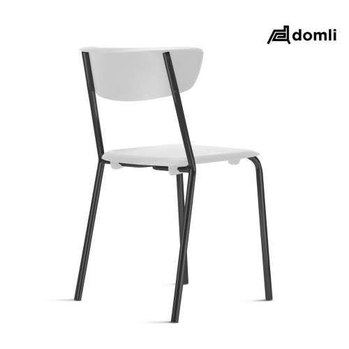 Assento e encosto independentes, injetados em polipropileno 100% reciclável, sendo que o encosto apresenta, apoio para que o usuário possa se apoiar no encosto mesmo em uma postura que permita apoio lateral ao encosto, utilizado-o como se fosse um apoio para os cotovelos e braços. Estrutura fixa empilhável, do tipo 04 pés manufaturada em tubo de aço carbono de secção circular, com diâmetro externo mínimo de 22,22 mm e espessura de parede de, no mínimo, 1,50 mm. apresenta tratamento de superfície por meio de pintura a pó.
