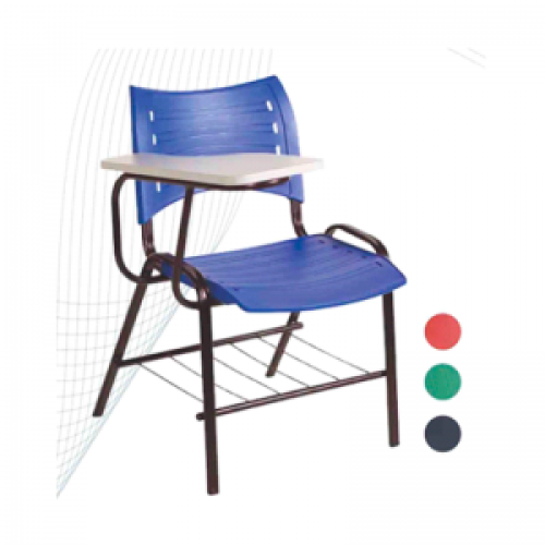 Carteira universitária iso ,em polipropileno ,estrutura em metolon com braço em fórmica.